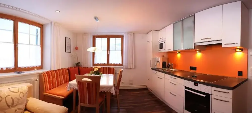 La posizione tranquilla. Su un grande pendio di montagna ma con una bella vista (vedi foto) e quasi nessun traffico. Articoli da cucina molto estesi, lussuosi, in grado di cucinare sul posto.